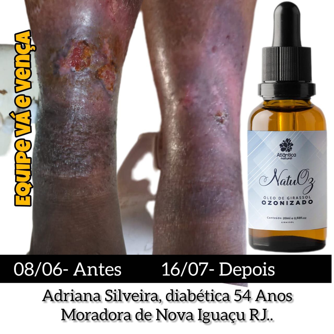 Úlcera grave em perna de diabética, cicatrização notável em 38 dias com NatuOz.